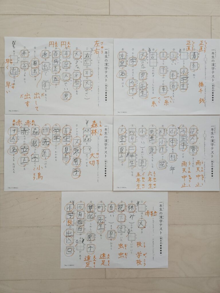 夏休みでいいタイミングなので、1年生の漢字の習得度チェックをしてみました。